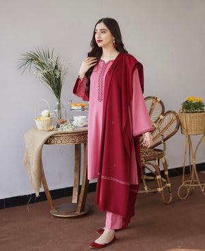 3 Piece - Unstitched Embroidered Dhanak Fabric AS-15